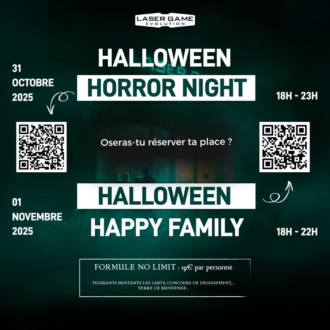 Vendredi 31 octobre de 18h à 23h pour une soirée 100% horreur & Samedi 1er novembre de 18h à 22h pour une soirée Halloween Familiale !